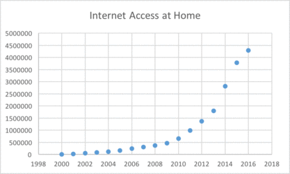 The sole internet service provider is Ethio Telecom. There are about 4,300,000 people who can access internet at their home.[18] It is harder to estimate the number of people who access the internet through internet café's which are much more popular and affordable.