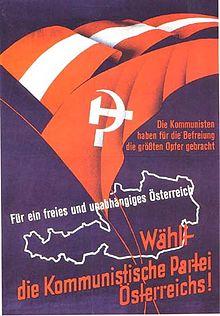 The Communist Party of Austria (German: Kommunistische Partei Österreichs, KPÖ) is a communist party in Austria.[3] Established in 1918 as the Communist Party of German-Austria (KPDÖ), it is one of the world's oldest Communist parties. The KPÖ was banned between 1933 and 1945 under both the Austrofascist regime and the Nazi German control of Austria after the 1938 Anschluss.[1] It played an important role in the Austrian resistance against the Nazis.[1]