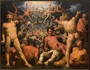 Many cultures have a creation myth in which a group of younger, more civilized gods conquers and/or struggles against a group of older gods. In Hindu mythology, the younger devas (gods) battle the older asuras (demons).[38]In the Greek myth of the Titanomachy, the Olympian gods defeat the Titans, an older and more primitive divine race, and establish cosmic order.[38][39]