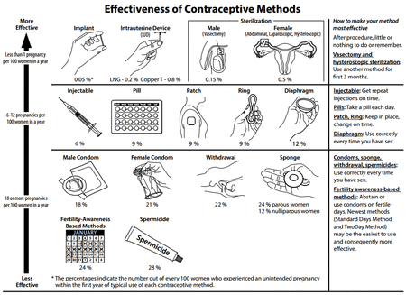 - ^ a b c Trussell J (2011). "Contraceptive Efficacy." (PDF). In Hatcher RA, Trussell J, Nelson AL, Cates W, Kowal D, Policar M (eds.). Contraceptive Technology (Twentieth Revised ed.). New York NY: Ardent Media.