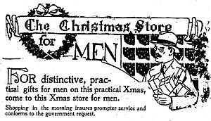 Archaeological evidence suggests that the British engaged in minimal shopping in the early Middle Ages. Instead, they provided for their basic needs through subsistence farming practices and a system of localised personal exchanges.[10] However, by the late Middle Ages, consumers turned to markets for the purchase of fresh produce, meat and fish and the periodic fairs where non-perishables and luxury goods could be obtained.[11] Women were responsible for everyday household purchases, but most of their purchasing was of a mundane nature. For the main part, shopping was seen as a chore rather than a pleasure.[12]