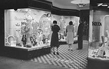 The first reliably dated department store to be established, was Harding, Howell & Co, which opened in 1796 on Pall Mall, London.[30] This venture was described as being a public retail establishment offering a wide range of consumer goods in different departments. This pioneering shop was closed down in 1820 when the business partnership was dissolved. Department stores were established on a large scale from the 1840s and 50s, in France, the United Kingdom and the US. French retailer, Le Bon Marche, is an example of a department store that has survived into current times Originally founded in 1838 as a lace and haberdashery store, it was revamped mid-century and opened as a department store in 1852.[31]