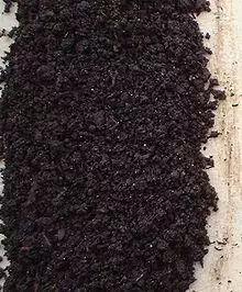 Compost can be used as an additive to soil, or other matrices such as coir and peat, as a tilth improver, supplying humus and nutrients. It provides a rich growing medium, or a porous, absorbent material that holds moisture and soluble minerals, providing the support and nutrients in which plants can flourish, although it is rarely used alone, being primarily mixed with soil, sand, grit, bark chips, vermiculite, perlite, or clay granules to produce loam. Compost can be tilled directly into the soil or growing medium to boost the level of organic matter and the overall fertility of the soil. Compost that is ready to be used as an additive is dark brown or even black with an earthy smell.[18]