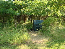 A composting toilet does not require water or electricity, and when properly managed does not smell. A composting toilet collects human excreta which is then added to a compost heap together with sawdust and straw or other carbon rich materials, where pathogens are destroyed to some extent. The amount of pathogen destruction depends on the temperature (mesophilic or thermophilic conditions) and composting time.[29] A composting toilet tries to process the excreta in situ although this is often coupled with a secondary external composting step. The resulting compost product has been given various names, such as humanure and EcoHumus.[29]