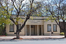 Before mergers in recent decades it was a common in New South Wales for rural shires to have their offices in an adjacent rural municipality (rural town). At the time of its abolition, the only surviving case was Conargo Shire Council's offices in Deniliquin.