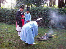 With particular emphasis on the importance of the family and social harmony, rather than on an otherworldly source of spiritual values,[4] the core of Confucianism is humanistic.[5] According to Herbert Fingarette's conceptualisation of Confucianism as a philosophical system which regards "the secular as sacred",[6] Confucianism transcends the dichotomy between religion and humanism, considering the ordinary activities of human life—and especially human relationships—as a manifestation of the sacred,[7] because they are the expression of humanity's moral nature (xìng 性), which has a transcendent anchorage in Heaven (Tiān 天).[8] While Tiān has some characteristics that overlap the category of godhead, it is primarily an impersonal absolute principle, like the Dào (道) or the Brahman. Confucianism focuses on the practical order that is given by a this-worldly awareness of the Tiān.[9][7] Confucian liturgy (called 儒 rú, or sometimes simplified Chinese: 正统; traditional Chinese: 正統; pinyin: zhèngtǒng, meaning 'orthopraxy') led by Confucian priests or "sages of rites" (礼生; 禮生; lǐshēng) to worship the gods in public and ancestral Chinese temples is preferred on certain occasions, by Confucian religious groups and for civil religious rites, over Taoist or popular ritual.[10]