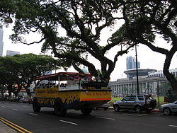 Connaught Drive (Chinese: 康乐通道) is a one-way road linking Stamford Road to Fullerton Road on the northern side of the Singapore River within the Downtown Core in Singapore. Esplanade Park is on the left side of the road, and The Padang is on the right. Before the Esplanade Bridge was opened in 1997, the road was used by vehicles from Marina Centre and Nicoll Highway to cross the Singapore River. The road is still used by several bus services and as a car park on both sides of the road as well as for coach parking.