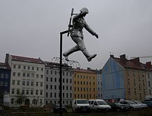 A sculpture called Mauerspringer ("Walljumper") by Florian and Michael Brauer and Edward Anders can be seen close to the site of the defection,[6] but has since been moved to the side of a building on Brunnenstraße, several meters south of Bernauer Straße.