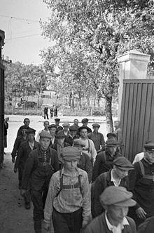 The range of eligible ages for conscripting was expanded to meet national demand during the World Wars. In the United States, the Selective Service System drafted men for World War I initially in an age range from 21 to 30 but expanded its eligibility in 1918 to an age range of 18 to 45.[21] In the case of a widespread mobilization of forces where service includes homefront defense, ages of conscripts may range much higher, with the oldest conscripts serving in roles requiring lesser mobility. Expanded-age conscription was common during the Second World War: in Britain, it was commonly known as "call-up" and extended to age 51. Nazi Germany termed it Volkssturm ("People's Storm") and included men as young as 16 and as old as 60.[22] During the Second World War, both Britain and the Soviet Union conscripted women. The United States was on the verge of drafting women into the Nurse Corps because it anticipated it would need the extra personnel for its planned invasion of Japan. However, the Japanese surrendered and the idea was abandoned.[23]