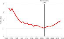 From 1994 to 1997, Major privatised British Rail, splitting it up into franchises to be run by the private sector. Its success is hotly debated, with a large increase in passenger numbers and investment in the network balanced by worries about the level of subsidy. Train fares cost more than under British Rail.[68]