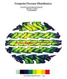 Statically, the size, shape, and pressure distribution are functions of many things,[1] the most important of which are the load on the tire and the inflation pressure: