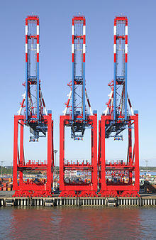 A Panamax crane can fully load and unload containers from a panamax class container ship capable of passing through the Panama Canal (190 ft (57.91 m)limit in air draft, 12–13 containers wide).[1]