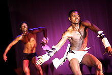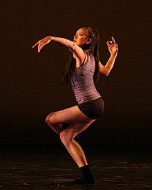 In terms of the focus of its technique, contemporary dance tends to combine the strong but controlled legwork of ballet with modern that stresses on torso. It also employs contract-release, floor work, fall and recovery, and improvisation characteristics of modern dance.[3] Unpredictable changes in rhythm, speed, and direction are often used, as well. Additionally, contemporary dance sometimes incorporates elements of non-western dance cultures, such as elements from African dance including bent knees, or movements from the Japanese contemporary dance, Butoh.[4][5]