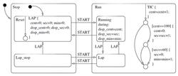 Control logic can be modeled using a state diagram,[3] which is a form of hierarchical state machine. These state diagrams can also be combined with flow charts to provide a set of computational semantics for describing complex control logic.[4] This mix of state diagrams and flow charts is illustrated in the figure on the right, which shows the control logic for a simple stopwatch. The control logic takes in commands from the user, as represented by the event named “START”, but also has automatic recurring sample time events, as represented by the event named “TIC”.