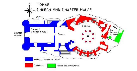 Following the dissolution of the Templar Order, on 14 March 1319 (following the request of King Denis of Portugal), Pope John XXII instituted the Order of Christ.[1] The Templar order had been suppressed during most of Europe from 1312 to 1314, but in Portugal its members, assets, and partly its membership were transferred to the Order of Christ.[1] The seat of the former Knights Templar was converted in 1357 into the seat of this new order.[1] As a result, at about the first half of the 15th century, work was completed to adapt the Templar oratory, introducing an open choir to the western niche, about half-way up the wall.[1] What remains of this adaptation was the colonnade frame with interior arch.[1] At the same time the main palace was constructed.