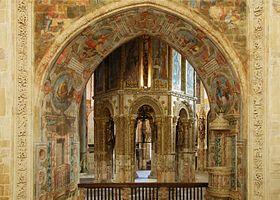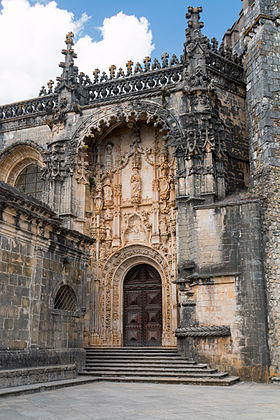 In 1484, King D. Manuel (who became Master of the Order in 1484 and King of Portugal in 1495) ordered the construction of a sacristy (today the Hall of Passage), that connected the choir to the Chapel of São Jorge, linking the choir with the wall of the stronghouse.[1] By the end of the century, the convent's General Chapter, decided to expand the convent (sometime around 1492), with 3,500 reis being spent on the public works in 1499: the chapterhouse, main altar, ironworks for the niche/archway, paintings and sculptures (for the same) and the choir were all expanded or remodelled.[1]