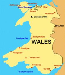 Conwy Bay lies at the southeastern point of the coast of Anglesey at Bangor on the northern central coast of Wales.[1] Puffin Island and the Great Orme mark the limits of the bay.[2] The bay is entered between Trwyn-du and Great Ormes Head in the northeast and extends for approximately 8 miles (13 km) to the southwest at Bangor, marking the northeast entrance to the Menai Strait.[3]