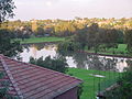 In the 1830s a dam was built across the river, however, this did not provide a clean water supply and the structure itself began to damage the river's ecology by preventing tidal flushing of deposited urban silt. A second dam was built to serve a Sugar Mill at the new village of Canterbury Vale. The location took advantage of the water supply and barge transport. The Mill closed in 1855, however other polluting industries were later to follow including wool washes, tanneries and boiling down works. Despite the increasingly doubtful quality of the water, the river remained a popular place in the late nineteenth century for boating, picnics and swimming. In 1894, artist Sydney Long painted an idyllic scene of boys swimming in the Cook's River, entitled By Tranquil Waters, which was so well received that it was bought by the Trustees of the Art Gallery of New South Wales.[7][8] By the 1880s tree clearing resulted in erosion, silting and expansion of reed beds, blocking river flow.