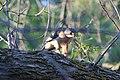 A lower diversity of species and lower overall numbers of mammals are taken relative to bird prey but mammalian prey can be locally important.[179] Chipmunks are often regularly hunted in various regions, though only about one-third of North American chipmunks are known in the prey spectrum.[179][180][250][252][253][254] High balances of the relatively large 96 g (3.4 oz) eastern chipmunk (Tamias striatus) were found in studies from New York, Michigan and Wisconsin.[154][174][182] The eastern chipmunk appeared to dominate the foods of Cooper's hawks in the Green Ridge State Forest in Maryland, at 49.1% of 57 prey items and mammals altogether made up an exceptional 66.9% of the foods.[255] In the western United States, fewer chipmunks are identifiable but such prey is fairly commonly detected.[180][192] High balances of chipmunks were found in food studies from Oregon, especially in eastern Oregon where chipmunks (unidentified to species) were the leading prey type, at 22.5% of 120 prey items. The most common chipmunk prey in Oregon is probably the 89.3 g (3.15 oz) Townsend's chipmunk (Neotamias townsendii) but the Cooper's hawks may take chipmunks down to the size of the 48 g (1.7 oz) least chipmunk (Neotamias minimus).[179][256] Mammals distantly related to chipmunks, such as ground squirrels (including antelope squirrels) can be taken in locally high volume.[5] Golden-mantled ground squirrels (Callospermophilus lateralis) were the second most important prey in eastern Oregon at 16.6%.[179] Thirteen-lined ground squirrels (Ictidomys tridecemlineatus) were the second most common prey species in a study from Wisconsin and also important in the diet in North Dakota (where they were the most significant contributor of biomass, constituting 23.4%).[223][207][257] Golden-mantled and thirteen-lined ground squirrels are fairly small for ground squirrels, the earlier averaging 166 g (5.9 oz), the latter of similar size.[179] A few larger ground squirrels may be hunted, such as California ground squirrels (Otospermophilus beecheyi) and rock squirrels (Otospermophilus variegatus), both averaging over 600 g (1.3 lb) in adults, albeit infrequently.[218][258] Tree squirrels are widely taken but secondary prey for Cooper's hawks. The smallish, roughly 200 g (7.1 oz) American red squirrel (Tamiasciurus hudsonicus) are not infrequent prey in northerly locations. About 36 red squirrels were recorded in the foods of Cooper's hawk in Ithaca, New York and these squirrels appear to have specific alarm calls that are provoked by these hawks, however the rate of predation by Cooper's appears to be low relative to other predators overall.[174][259][260] Reported when taking red squirrels, male Cooper's hawks, being relatively small, may tear the prey into pieces that can be transported by them to the nest.[33] Numerous other tree squirrels are taken occasionally by Cooper's hawks.[47][59][179][261] Sizes of tree squirrels taken by Cooper's hawks were studied in Missouri. Eastern gray squirrels (Sciurus carolinensis) were taken of up to adult size but fox squirrels (Sciurus niger) were only taken as juveniles, as the adults, sometimes scaling up to 1,350 g (2.98 lb), were apparently too formidable for the Cooper's. The estimated weights of both the gray and fox squirrels taken in Missouri was 450 g (16 oz), with the gray contributing 10.9% of the biomass.[8]