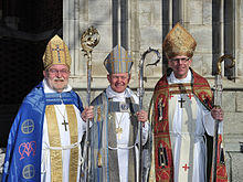 The earliest post-Reformation prayer books of the Church of England contemplated the continued use of the cope, with the 1549 Prayer Book specifying that the priest at Holy Communion should wear "a vestment or cope". It was common, particularly in English cathedrals, for the priest or bishop to wear a cope for Holy Communion from the Restoration. In the contemporary Church of England and the Anglican Communion as a whole, the cope can be worn as a Eucharistic vestment, and sometimes as a non-Eucharistic vestment, in the same manner as that of the Roman Catholic Church. It is also an Anglican tradition for clergy to wear copes on diocesan occasions.