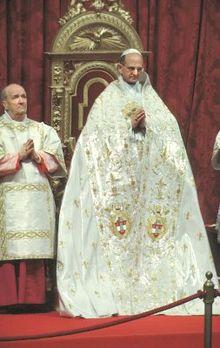 The mantum or papal mantle differs little from an ordinary cope except that it is somewhat longer, and is fastened in the front by an elaborate morse. In earlier centuries it was red in colour; red, at the time being the papal colour rather than white. In the eleventh and twelfth centuries the immantatio, or bestowal of the mantum on the newly elected pope, was regarded as specially symbolical of investiture with papal authority: Investio te de papatu romano ut praesis urbi et orbi, "I invest you with the Roman papacy, that you may rule over the city and the world" were the words used in conferring it at the papal coronation. After the Second Vatican Council and the pontificate of Pope Paul VI, the longer mantum fell out of use. His successors have instead used a cope in its place. Some old mantums were converted to copes by being shortened, such as during the pontificate of Pope Benedict XVI.