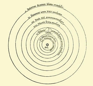 Copernican heliocentrism is the name given to the astronomical model developed by Nicolaus Copernicus and published in 1543. This model positioned the Sun at the center of the Universe, motionless, with Earth and the other planets orbiting around it in circular paths, modified by epicycles, and at uniform speeds. The Copernican model displaced the geocentric model of Ptolemy that had prevailed for centuries, which had placed Earth at the center of the Universe. Copernican heliocentrism is often regarded as the launching point to modern astronomy and the Scientific Revolution.