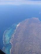 Soils in Coral Bay are sandy and calcareous due to oxide leaching. Coral Bay forms part of the Carnarvon Basin, an area consisting of undulating sand plains that slant toward the ocean, resulting in a low relief open drainage pattern.[6] The surrounding coastline is characterised by limestone platforms. Coral Bay also lies upon the Bullara Sunklands, a depression that runs along the eastern coast of Western Australia from Shark Bay to Exmouth Gulf.[6] The natural vegetation in the area consists of the spinifex, wattle and poverty bush shrub varieties. There is also a strong mangrove presence with Avicennia marina being particularly dominant. Buffel is the most common grass in the region.[6] In the Ningaloo Marine Park more than 200 species of coral fauna can be found, alongside animal species such as green and hawksbill turtles, humpbacks whales, dugongs and whale sharks.[6]