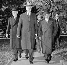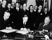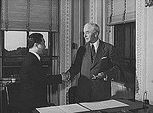 Hull won election to the Senate in 1930, but resigned from the Senate in 1933 to become Secretary of State. Roosevelt named him Secretary of State and appointed him to lead the American delegation to the London Economic Conference, but it collapsed when Roosevelt publicly rejected the main plans. In 1943, Hull served as United States delegate to the Moscow Conference. At all times, his main objective was to enlarge foreign trade and lower tariffs. The more important issue of the American role in World War II was handled by Roosevelt who worked through Sumner Welles, the second-ranking official at the State Department. Hull did not attend the summit meetings that Roosevelt had with Churchill and Stalin.[3] In 1943, Hull finally destroyed Welles's career by threatening to expose his homosexuality.[4]