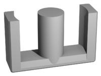 Again used for iron cores. Similar to using an "E" and "I" together, a pair of "E" cores will accommodate a larger coil former and can produce a larger inductor or transformer. If an air gap is required, the centre leg of the "E" is shortened so that the air gap sits in the middle of the coil to minimize fringing and reduce electromagnetic interference.
