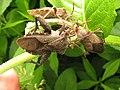 The common names of the Coreidae vary regionally. Leaf-footed bug refers to leaf-like expansions on the legs of some species, generally on the hind tibiae. In North America, the pest status of species such as Anasa tristis on squash plants and other cucurbits gave rise to the name squash bugs.[3][4] The Coreidae are called twig-wilters or tip-wilters in parts of Africa and Australia because many species feed on young twigs, injecting enzymes that macerate the tissues of the growing tips and cause them to wilt abruptly.[5][6]
