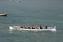 The Cornish pilot gig is a six-oared rowing boat, clinker-built of Cornish narrow-leaf elm,[1] 32 feet (9.8 m) long with a beam of 4 feet 10 inches (1.47 m). It is recognised as one of the first shore-based lifeboats that went to vessels in distress, with recorded rescues going back as far as the late 17th century. The original purpose of the Cornish pilot gig was as a general work boat, and the craft is used as a pilot boat, taking pilots out to incoming vessels off the Atlantic Coast. At the time pilots would compete between each other for work; the fastest gig crew who got their pilot on board a vessel first would get the job, and hence the payment.