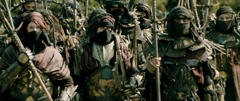 The Haradrim are more recognizable. They are garbed in turbans and flowing crimson robes. They ride giant elephants. They resemble nothing other than North African or Middle Eastern tribesmen. A recently released "Towers" companion book, "The Lord of the Rings: Creatures," calls the Haradrim "exotic outlanders" whose costumes "were inspired by the twelfth-century Saracen warriors of the Middle East."