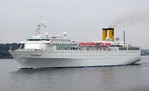 Club Harmony was a cruise ship, last owned by Polaris Shipping and operated by Harmony Cruises. She was built in 1969 by the Wärtsilä Turku Shipyard in Turku, Finland as the container ship Axel Johnson for the Sweden-based Rederi AB Nordstjernan and operated on their Johnson Line services. In 1986 she was sold to Regency Cruises with the intention of being converted into a cruise ship under the name Regent Sun, but she was laid up instead. In 1987 she was sold to and renamed Italia but continued laid up. In 1988 the ship was acquired by Costa Cruises, renamed Costa Marina and rebuilt into a cruise ship at the T. Mariotti shipyard in Genoa, Italy. She entered service as the Costa Marina in 1990.[2][3] From 2002 she was marketed more towards German passengers.[2]