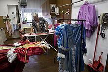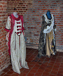 During the late Middle Ages in Europe, dramatic enactments of Bible stories were prevalent, therefore actual Christian vestments, stylized from traditional Byzantine court dress, were worn as costumes to keep the performances as realistic as possible.[1] Stereotypical characterization was key when clothing performers for this style of theatre. In most instances actors had to supply their own costumes when playing a character found in daily life.[4]