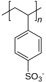 Counterions are the mobile ions in ion exchange polymers and colloids.[1] Ion exchange resins are polymers with a net negative or positive charge. Cation exchange resins consist of an anionic polymer with countercations, typically Na+ (sodium). The resin has a higher affinity for highly charged countercations, for example by Ca2+ (calcium) in the case of water softening. Correspondingly, anion exchange resins are typically provided in the form of chloride Cl−, which is a highly mobile couteranion.