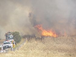 Fire fighting is the main job of the CFS. They respond to any fires including country and urban. Fire fighters combat grass fires, bush fires, crop fires, scrub fires, haystack fires, and brush fence fires, house fires, chimney fires, car fires, rubbish bin fires etc. Most trucks carry breathing apparatus, and use foam as a fire fighting agent.