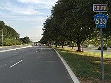 County Route 533 (CR 533) is a county highway in the U.S. state of New Jersey. The highway extends 32.78 miles (52.75 km) from the White Horse Circle, in Hamilton Township to Middlesex CR 607 on the border of Bound Brook and Middlesex Borough. CR 533 shares a long concurrency with U.S. Route 206 (US 206) through Princeton and Montgomery Township, while portions of the roadway in Somerset County are part of the Millstone River Valley Scenic Byway.
