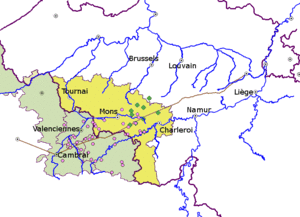The County of Hainaut (sometimes spelled Hainault, French: Comté de Hainaut, Dutch: Graafschap Henegouwen; German: Grafschaft Hennegau; Latin: comitatus hanoniensis), was a territorial lordship within the medieval Holy Roman Empire, straddling what is now the border of Belgium and France. Its most important towns included Mons (Dutch: Bergen), now in Belgium, and Valenciennes, now in France.