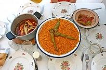 Couscous is also consumed in France, where it is considered a traditional dish, and has also become common in Spain, Portugal, Italy, and Greece. Indeed, many polls have indicated that it is often a favorite dish.[22] In France, Spain and Italy, the word "couscous" (cuscús in Catalan, Spanish; cuscus in Italian; cuscuz in Portuguese) usually refers to couscous together with the stew. Packaged sets containing a box of quick-preparation couscous and a can of vegetables and, generally, meat are sold in French, Spanish and Italian grocery stores and supermarkets. In France, it is generally served with harissa sauce, a style inherited from the Tunisian cuisine. Indeed, couscous was voted as the third-favourite dish of French people in 2011 in a study by TNS Sofres for magazine Vie Pratique Gourmand, and the first in the east of France.[23][24]