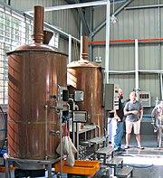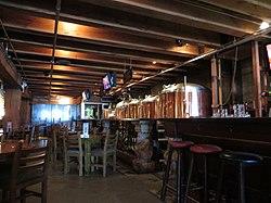 Brewpub is an abbreviated term combining the ideas of a brewery and a pub or public-house. A brewpub can be a pub or restaurant that brews beer on the premises.[18] In the United States a brewpub is defined as selling 25 percent or more of its beer on-site and operating significant food services. A taproom brewery is a professional brewery that sells 25 percent or more of its beer on-site and does not operate significant food services. The beer is brewed primarily for sale in the taproom, and is often dispensed directly from the brewery's storage tanks.[19]