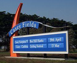 Australian Football/Cricket Casey Demons, a team in the Victorian Football League, plays its home games at Casey Fields. The Casey Demons, formerly the Casey Scorpions, were formerly the Springvale Football Club. There are 9 Australian football/cricket ovals available at J&P Camm Reserve (2 ovals), the Donnelly Recreation Reserve (2 ovals), the Clyde Recreation Reserve (1 oval), the Lawson Poole Reserve (2 ovals), the Junction Village Reserve (1 oval) and the Glover Recreation Reserve (1 oval). Eight of the nine ovals each have a synthetic centre cricket wicket. The Cranbourne Cricket Club was established in 1881 with the Cranbourne Football Club established in 1889. There are 2 rugby fields at the Lawson Poole Reserve (1 field) and the Clyde Recreation Reserve (1 field). Sports reserves The town has an Australian Rules football team competing in the Outer East Football Netball League.[7]