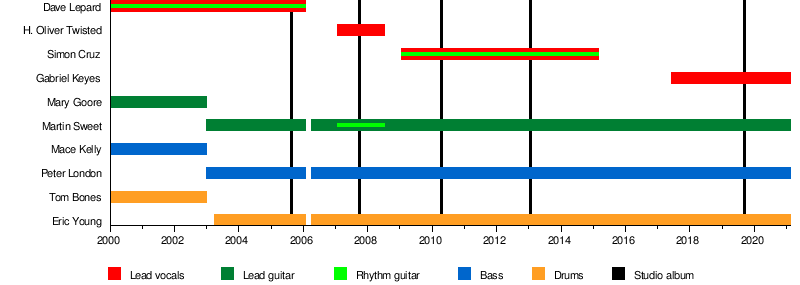 - Dave Lepard † – lead vocals, rhythm guitar (2000–2002, 2002–2006)