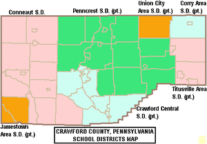 Crawford County comprises the Meadville, PA Micropolitan Statistical Area, which is also included in the Erie-Meadville, PA Combined Statistical Area.