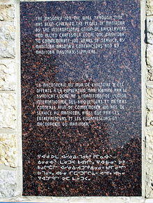 Bungi is a creole based on Scottish English, Scots, Scottish Gaelic, Cree, and Ojibwe.[26] Some French words have also been incorporated into its lexicon. This language flourished at and around the Red River Settlement (modern day location of Winnipeg, Manitoba) by the mid to late 1800s.[27] Bungi is now virtually extinct, as its features are being abandoned in favor of standard English.[26][28]