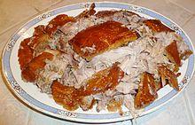 There are a number of techniques to achieve crispiness when cooking. Frying food can make it crispy, such seen in French fries. A breading coating using flour, egg wash, and bread crumbs will provide a layer of crispiness.[3] Baking and roasting impart crispiness, as well, as noted in the skin of Peking duck or pernil.