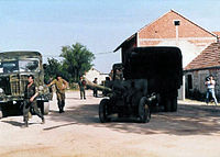According to Jović, on 27 June 1990 he and Veljko Kadijević, the Yugoslav Defence Minister, met and agreed that they should, regarding Croatia and Slovenia, "expel them forcibly from Yugoslavia, by simply drawing borders and declaring that they have brought this upon themselves through their decisions". According to Jović, the next day he obtained the agreement of Milošević.[94] However, Kadijević, of mixed Serb-Croat heritage and a Yugoslav Partisan in World War II, was loyal to Yugoslavia and not a Greater Serbia; Kadijević believed that if Slovenia left Yugoslavia the state would collapse and thus he discussed with Jović about possibly using the JNA to impose martial law in Slovenia to prevent this potential collapse and was willing to wage war with the secessionist republics to prevent their secession.[95] Kadijević considered the political crisis and ethnic conflict to have been caused by the actions of foreign governments, particularly Germany, which he accused of seeking to break up Yugoslavia to allow Germany to exercise a sphere of influence in the Balkans.[96] Kadijević regarded the Croatian government of Tuđman to be a fascist-inspired and that Serbs had the right to be protected from Croatian "armed formations".[96]