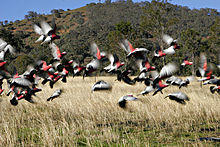 Cross fostering may occasionally occur in natural situations. In Australia, the closely related species from the cockatoo family, Eolophus roseicapilla (the galah) and Cacatua leadbeateri (the pink cockatoo), have overlapping ranges, and compete for nesting holes. However, two pairs of birds may share the same nest for a time, as they do not become aggressive until several eggs have been laid and incubation begins. When they do, the pink cockatoos are always the victors, evicting the galahs in what is termed interference competition. They are not consciously aware that some of the eggs in the nest were laid by the other bird however, and thus raise offspring of both species. These natural experiments have been used by Australian ornithologists Graeme Chapman and Ian Rowley to investigate the relative importance of genes and environment.[5] For example, they discovered that the galah chicks gave normal begging calls and alarm calls, but their contact calls (used to maintain social cohesion) were more like those of the pink cockatoos with which they lived.