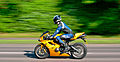 A sportbike, or sports bike, is a motorcycle optimized for speed, acceleration, braking, and cornering on paved roads, typically at the expense of comfort and fuel economy by comparison with other motorcycles.[1] Soichiro Honda wrote in the owner's manual of the 1959 Honda CB92 Benly Super Sport that, "Primarily, essentials of the motorcycle consists in the speed and the thrill," while Cycle World's Kevin Cameron says that, "A sportbike is a motorcycle whose enjoyment consists mainly from its ability to perform on all types of paved highway – its cornering ability, its handling, its thrilling acceleration and braking power, even (dare I say it?) its speed."[2]