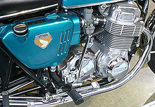 In the less developed world, smaller engine sizes are the norm, and relative terms like small, mid-sized and large displacement can have different meanings. For example, in India in 2002 there were about 37 million two-wheelers,[24] but as of 2008, there were only about 3,000 motorcycles, or fewer than one in 12,000, of displacement 1,000 cc (61 cu in) or more.[25] Similarly, the perception of relative sizes has shifted over time in developed countries, from smaller to larger displacements.[26] When the original superbike,[27][28] the Honda CB750, appeared in 1969, it was called a "big four,"[4] while today an inline four of 736.5 cc (44.94 cu in) would be classed in the middle range.