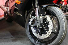 The combination of rider position, location of the engine and other heavy components, and the motorcycle's geometry help maintain structural integrity and chassis rigidity, and determine how it will behave under acceleration, braking, and cornering. Correct front-to-rear weight distribution is of particular importance to the handling of sport bikes, and the changing position of the rider's body dynamically changes the handling of the motorcycle.[10] Because of the complexity of modeling all the possible movements of different sized riders, to approach perfect tuning of a motorcycle's weight distribution and suspension is often only possible by having a bike customized or at least adjusted to fit a specific rider.[10] Generally, road racing style sport bikes have shorter wheelbases than those intended for more comfortable touring, and the current trend in sport bike design is towards shorter wheelbases, giving quicker turning at the expense of a greater tendency for unintentional wheelies and stoppies under hard acceleration and braking, respectively.[10][11][12] Some motorcycles have anti-wheelie systems, with various designs including computerized traction and suspension settings controls or mechanical suspension features, which are intended to reduce the lift and loss of traction of the front wheel under acceleration.[13]